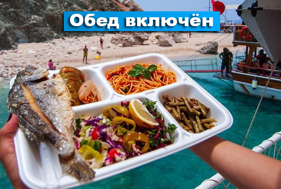 Включено: трансфер туда и обратно, обед, страховка, прогулка на яхте с посещением бухт, англоговорящий гид